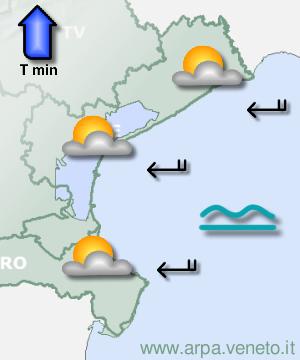 Bollettino del 11/04/2026 alle 13:00 aggiornamento del 12/04 alle 09.00 Venezia e laguna dom 12 aprile mattina dom 12 aprile pomeriggio lun 13 aprile mattina lun 13 aprile pomeriggio mar 14 aprile mer 15 aprile ![]() ![]() ![]() ![]() ![]() ![]() Cielo: Annuvolamenti e schiarite Temp.: min 6/8 C Precipitazioni: Assenti probabilita' : 0% Vento: Moderati da est Attendibilita': Ottima Cielo: Annuvolamenti e schiarite Temp.: max 22/24 C Precipitazioni: Assenti probabilita' : 0% Vento: Moderati da est Attendibilita': Ottima Cielo: Nuvolosità in aumento Temp.: min 12/14 C Precipitazioni: Piogge modeste probabilita' : 30% Vento: Forti da nordest Attendibilita': Ottima Cielo: Coperto Temp.: max 18/20 C Precipitazioni: Piogge moderate probabilita' : 70% Vento: Forti da est Attendibilita': Ottima Cielo: Coperto Precipitazioni: Piogge moderate probabilita' : 70% Attendibilita': Ottima Cielo: Coperto Precipitazioni: Piogge moderate probabilita' : 70% Attendibilita': Buona